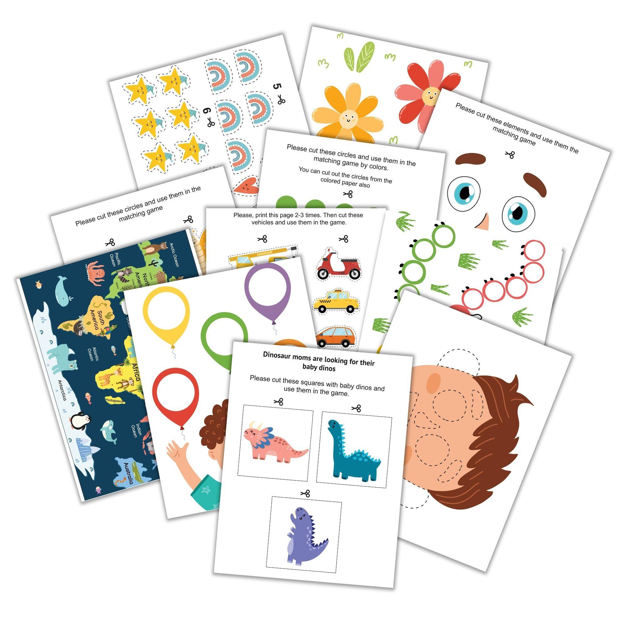 Balloons, Car Parking, Caterpillars, Cute Animals, Dino Mums and Babies, Face Parts, Feed The Cat, Flowers and Butterflies, How Many Dinosaurs?, How Old Are You?, Magic In A Jar, Make Your Plate, Map And Landmarks, Match Animals, Match Numbers With Pictures, Owls On A Tree, Sea Animals, Shopping Game, and Train With Animals